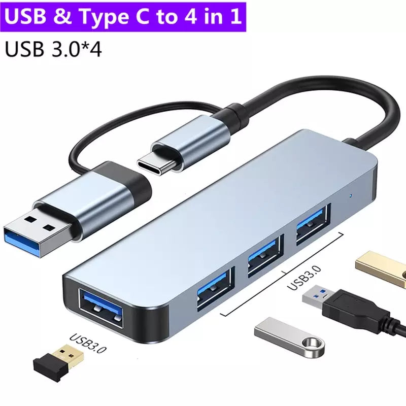 2 in 1 4 Port USB C Expander USB 3 Hub Type C Splitter Type C