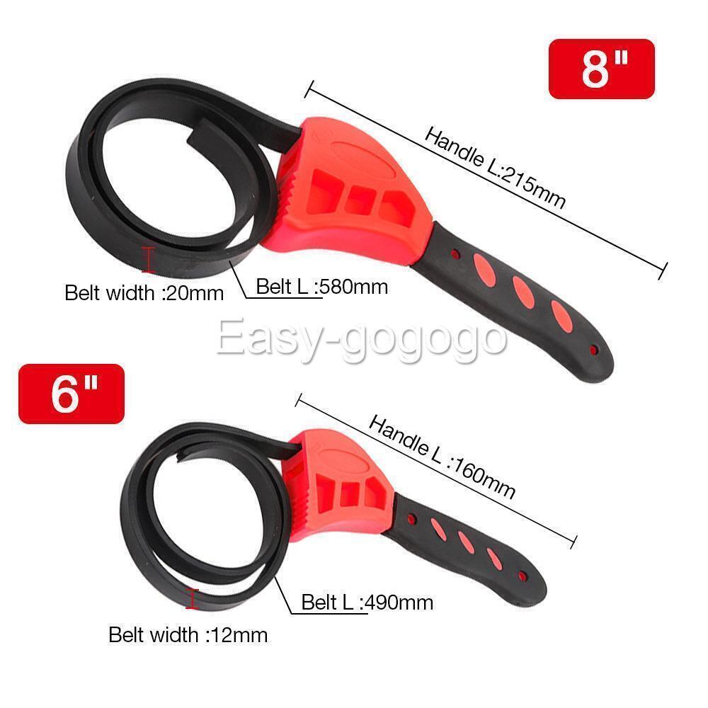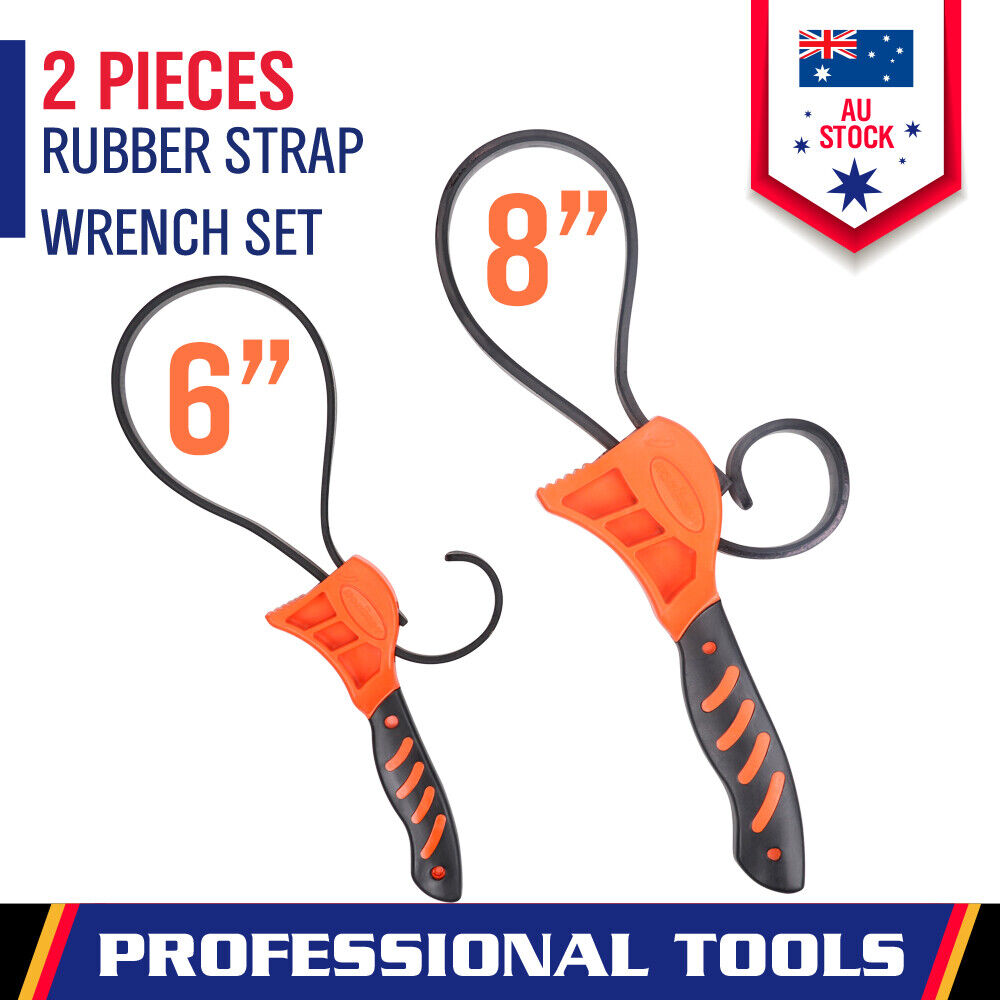 2Pc Rubber Strap Wrench Adjustable DIY Plumber Jars Hose Pipe Oil Filter Opener