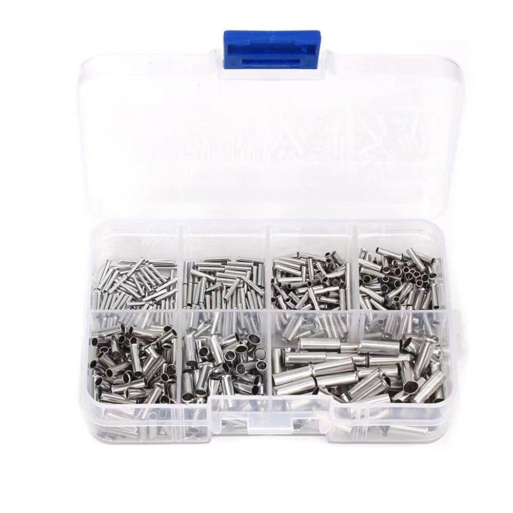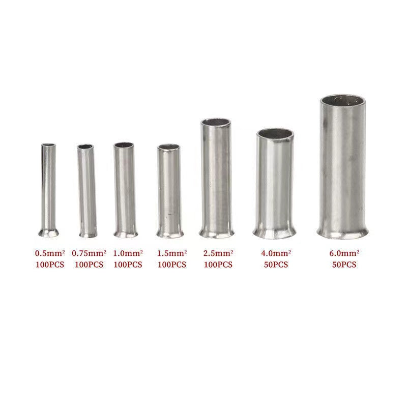600PCS 0.5mm²-6mm² Copper Bare Wire Splice Terminals Uninsulated Ferrules Crimp Connectors