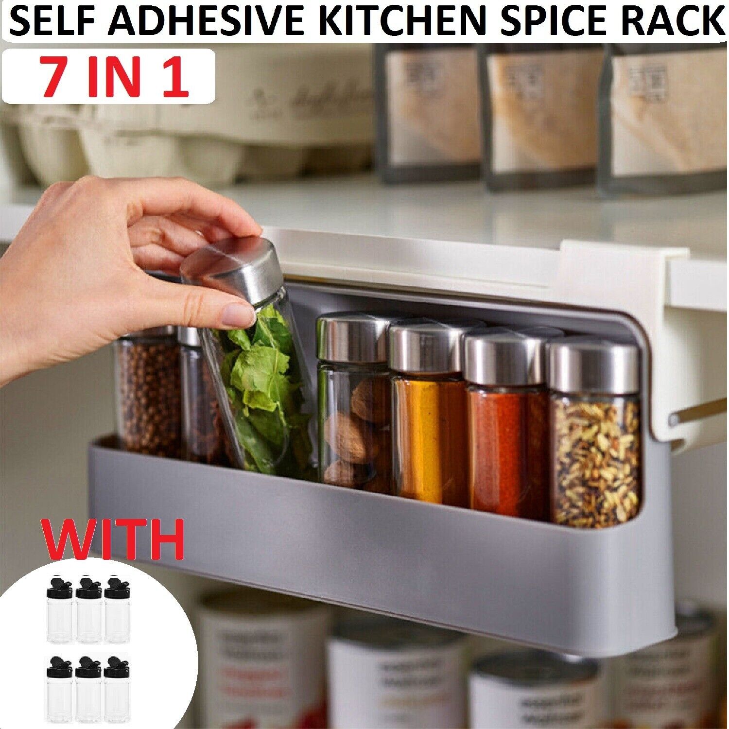 7 in 1 Self Adhesive Kitchen Spice Rack Jar Rack Organiser Storage Holder Shelf