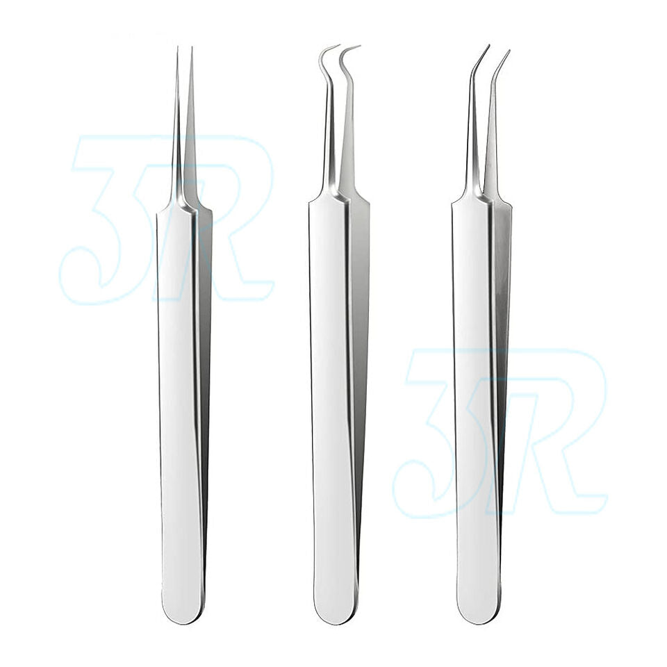 ● This acne clip is made of premium stainless steel, all tools of Blackhead Tweezers are made of 100% STAINLESS STEEL- Top grade corrosion free stainless steel allows safe sterilization, prevent corrosion and minimize risk of infections. Pointed tip tweezer handles acne and poping easily, it can perfectly aligned for precise plucking.These 3-piece kit includes various tools and handle designs for easy grip and multipurpose use.