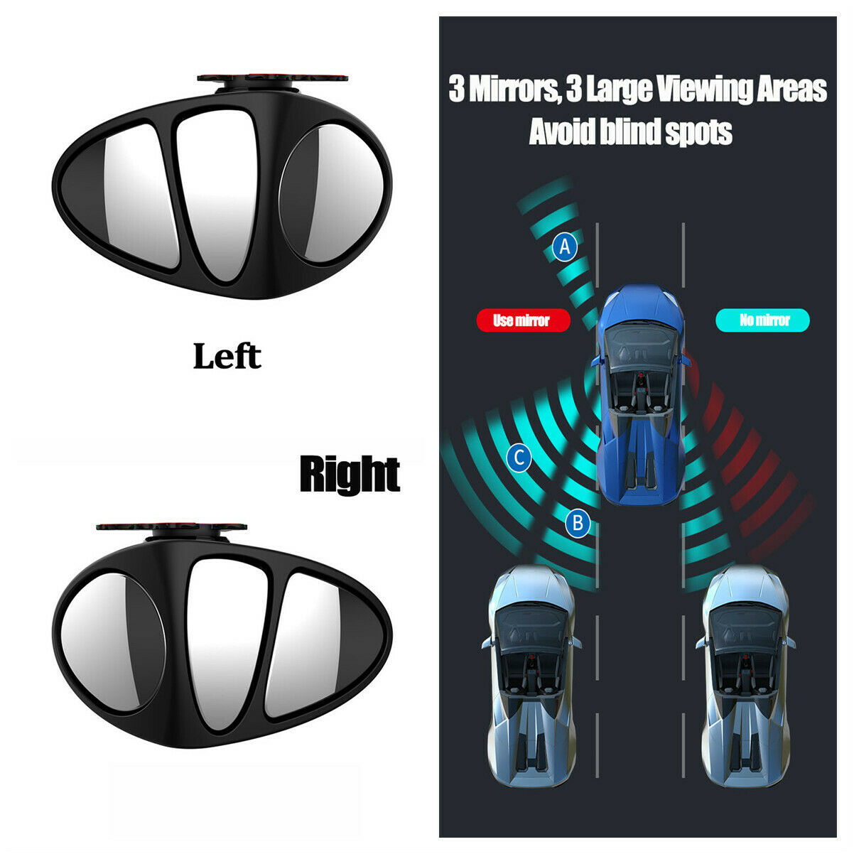 Car Blind Spot Mirrors Parking Aid Rear Side View Mirror 360° Wide Angle 3 Lens
