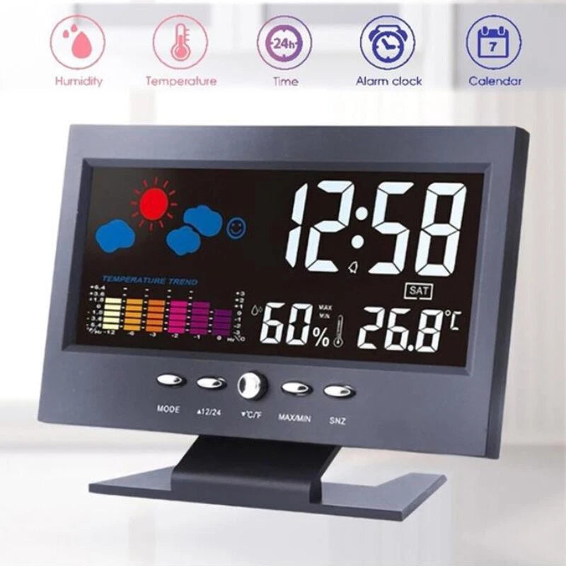 Color Screen Digital Backlight Snooze Alarm Clock Weather Date Hour Humidity