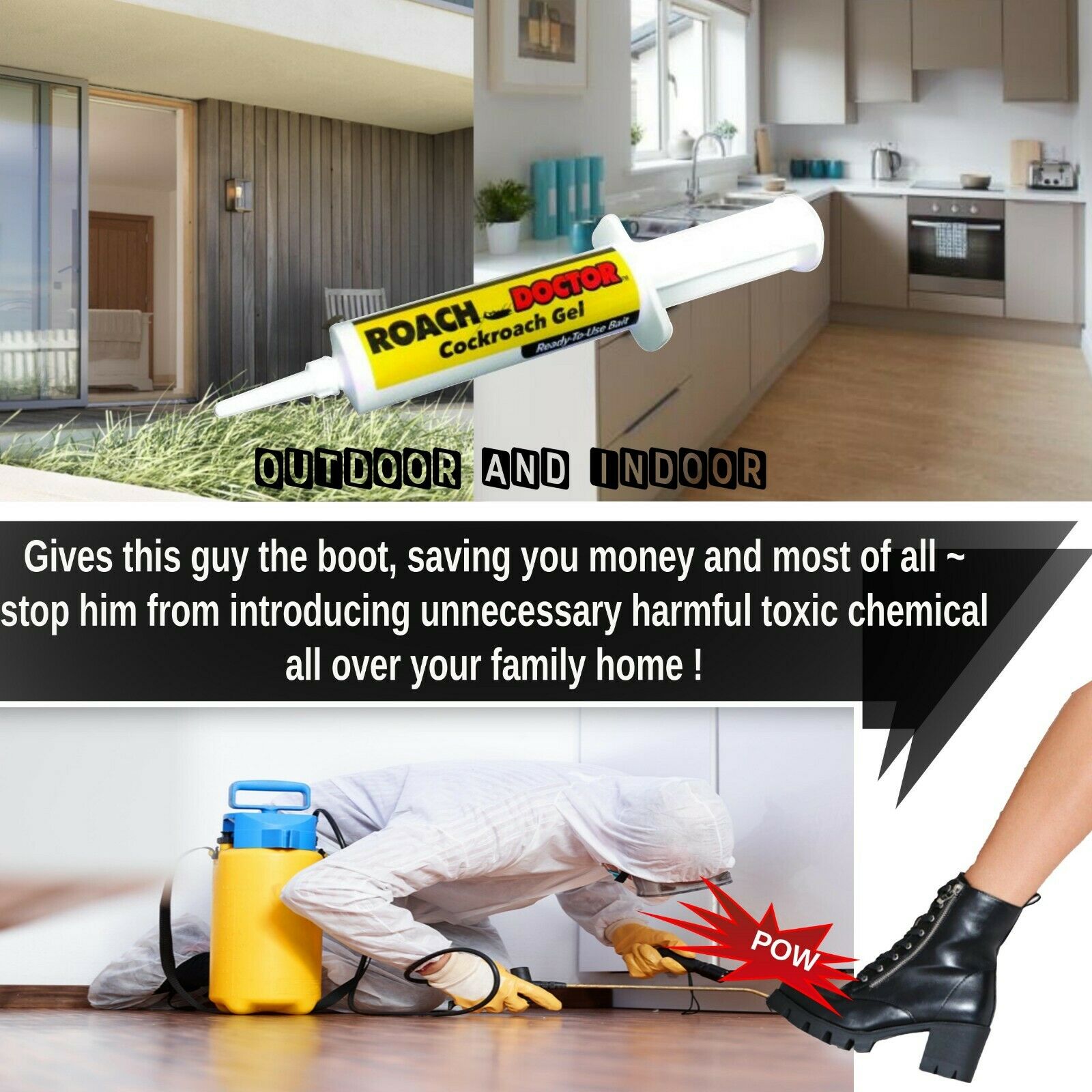 - Stop spending a fortune for a Pest Controller! This ready-to-use roach bait helps rid your home of disgusting roaches quickly and easily. The unique syringe holds a special gel formula that easily gets into the tight cracks and crevices where roaches love to hide. The effective Roach Doctor's formula lures and kills roaches to help keep your home healthier and pest-free. Can be used indoors or outdoors. 1.06 oz. tube.