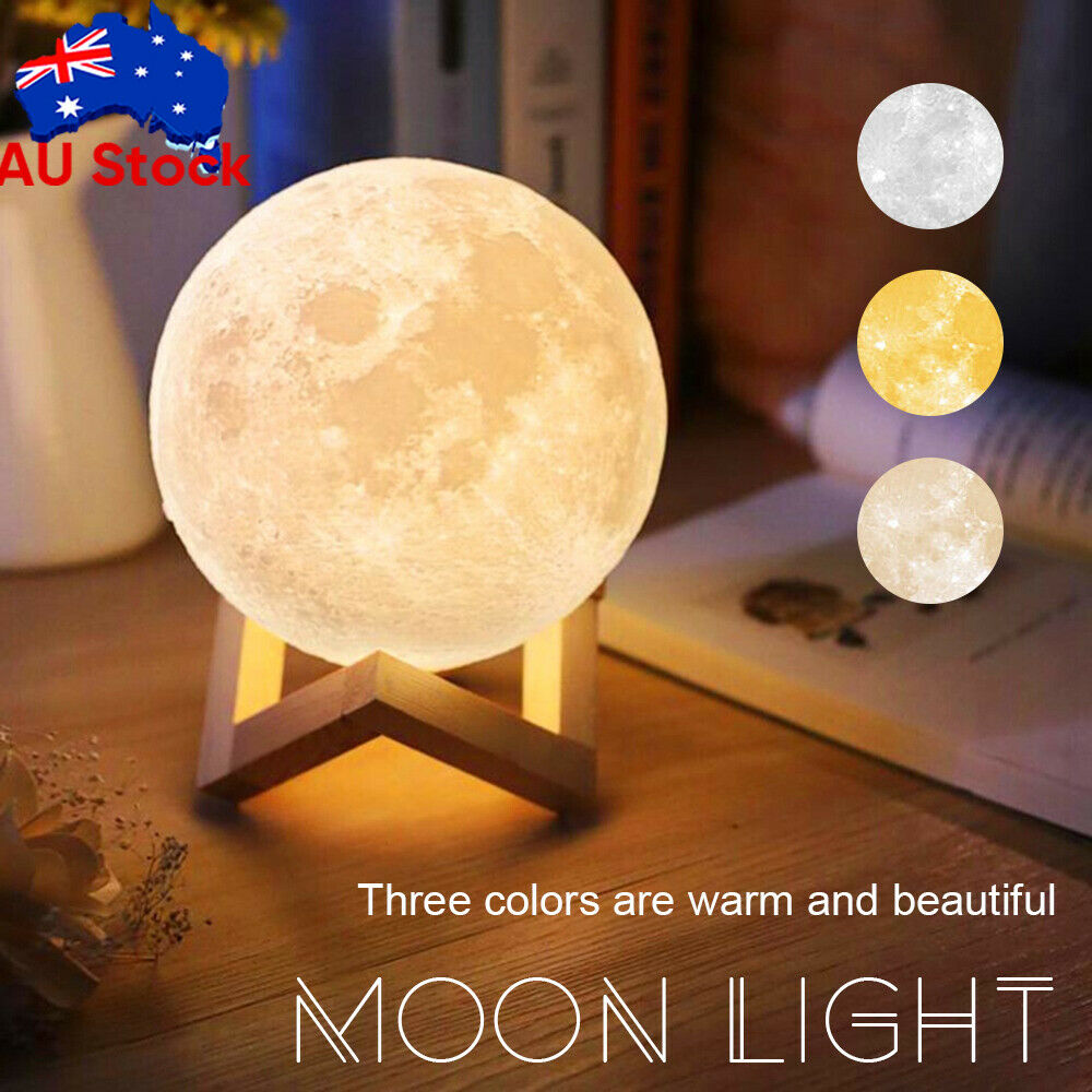 3 Colors - Our updated edition of this 3d moon light gives off cool white,Warm White and Yellow colors,each color is delicate design and brings you different feeling in different circumstances. Touch/Tap the moon light (Once to Third) to switch light color.