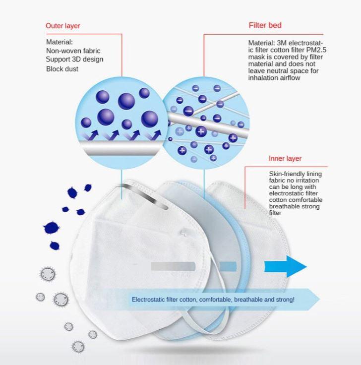 Free Shipping- 50x KN95 3M 9501+ Face Mask Masks Anti Dust Flu Protection Respirator (Ear Loop)