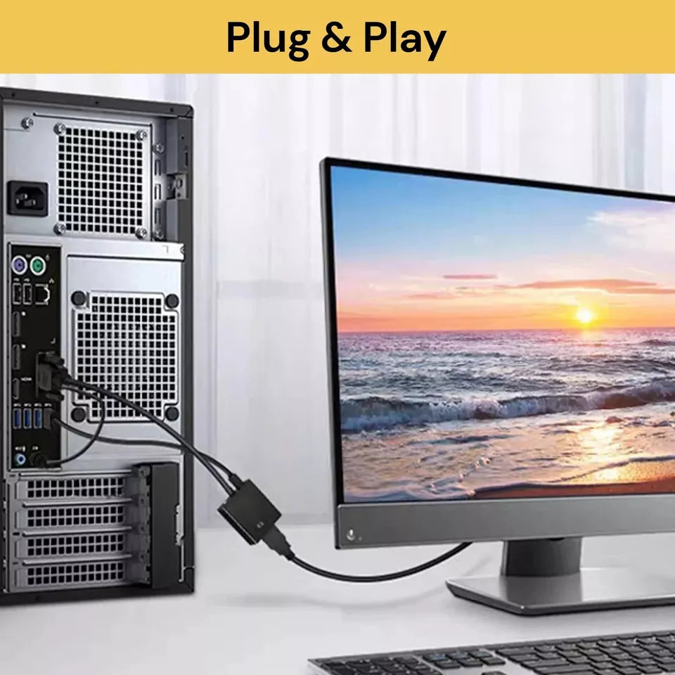 - Designed for HDMI display device, VGA to HDMI adapter converts both VGA signal and audio signal to HDMI signal, makes it possible to share your video/audio/data from VGA-ports-only computers or old-styled devices to any HDMI-equipped devices like HDTVs, monitors, desktop computers, laptops, DVDs, Set TOP Box, projectors etc.