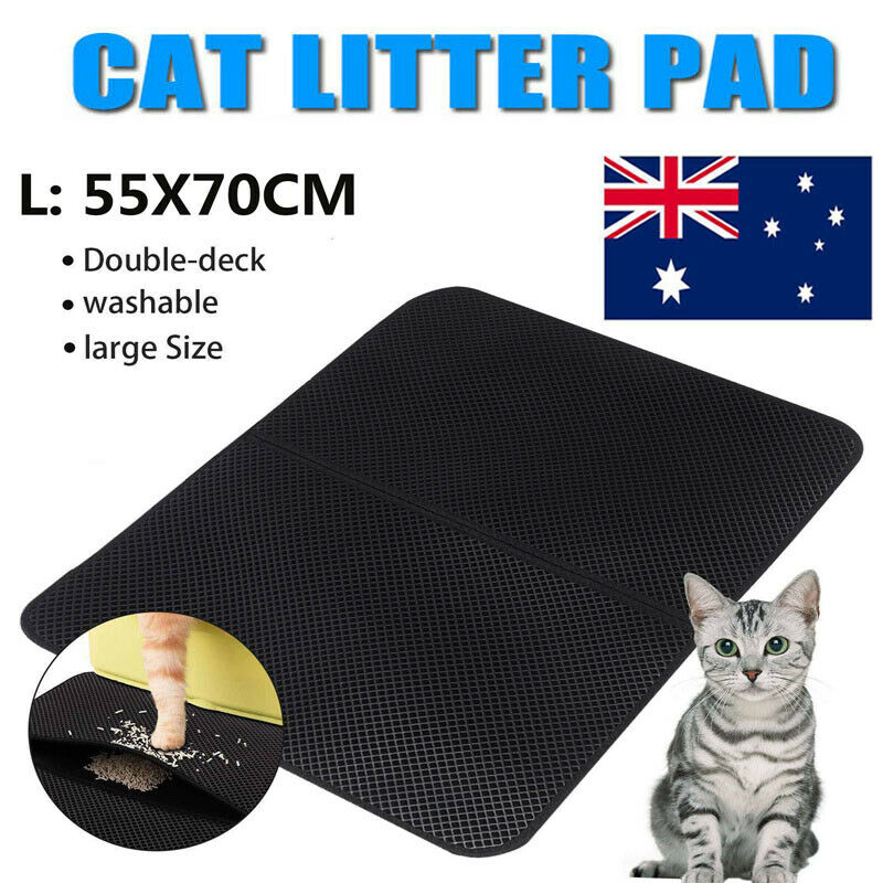 - C): DOUBLE LAYERED: It features two (2) distinct layers and uses hallow ridges to comfortably spread your cat's paws and trap excess litter. The mat uses Velcro strips to hold the two layers together.